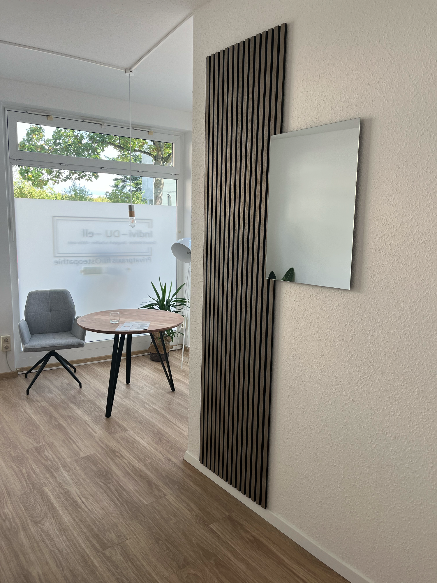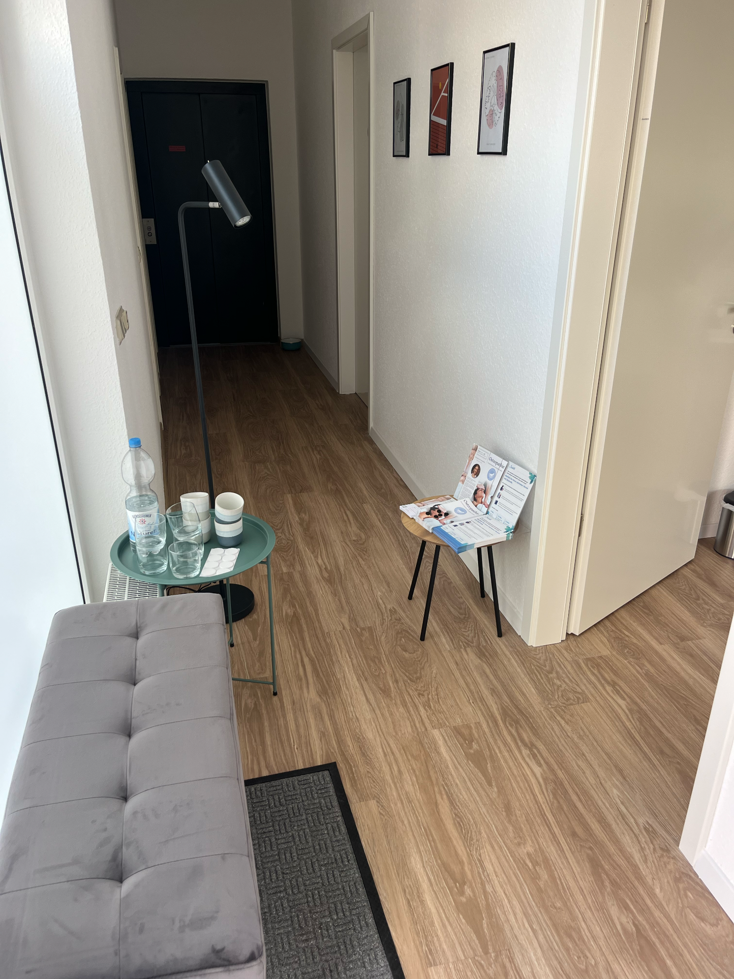 Herzlich Willkommen in meinen hellen, freundlichen Räumlichkeiten. Die Praxis liegt gut erreichbar im Zentrum von Dormagen und verfügt über einen barrierefreien Zugang, Kundentoilette, einen Patientenparkplatz und einen kleinen Wartebereich.
